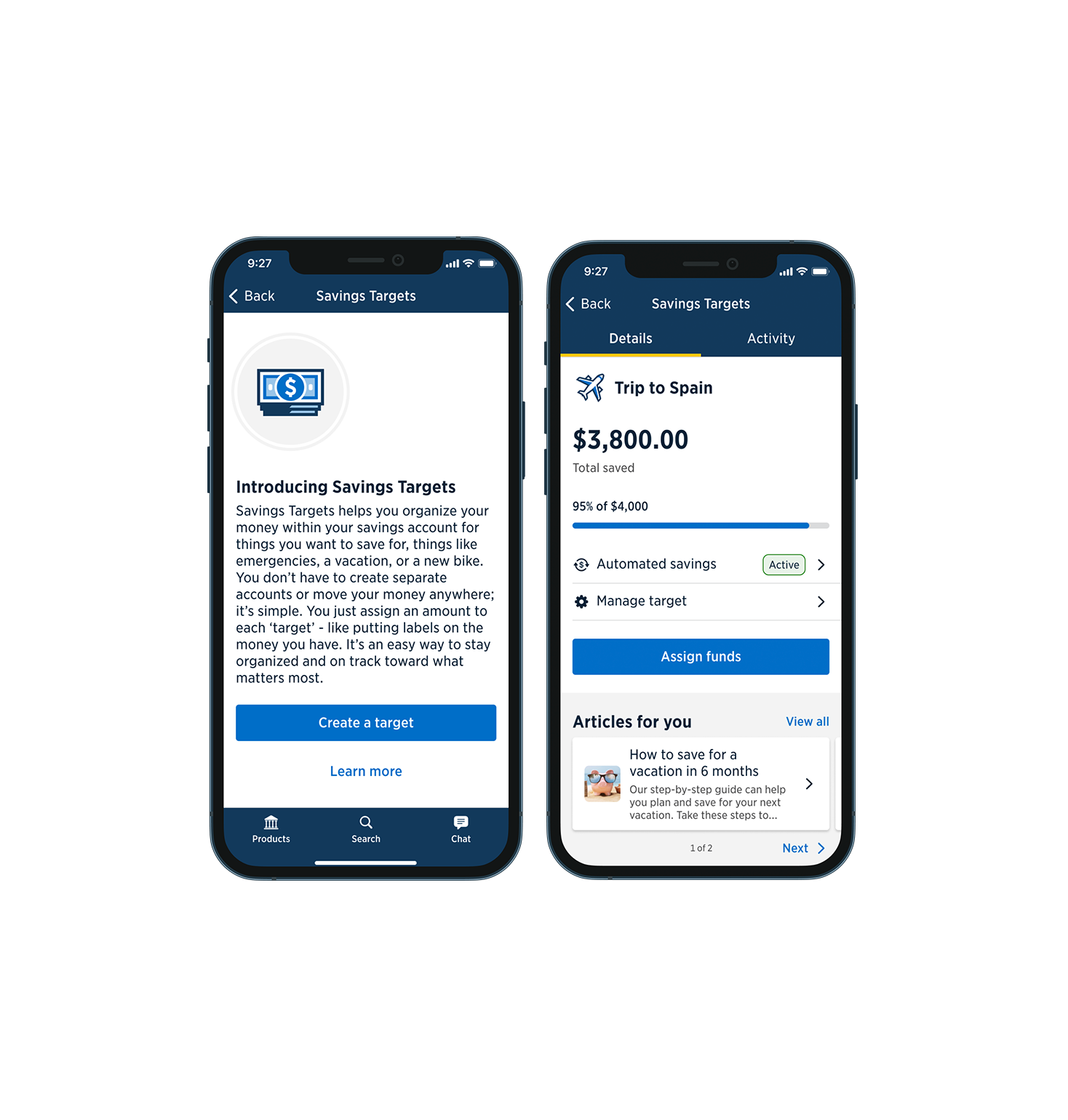 Led the design of a new experience that allows members to create and manage personalized savings goals connected to their core savings account.